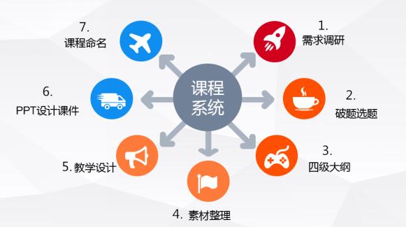 ● 学习结束后学员能自行绘制破题图、设计标准课件、绘制课程四级目录图、编写课程讲义、建立素材百宝箱;