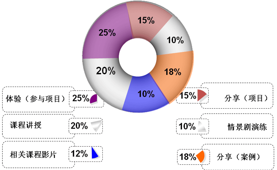 2. 上课方式多元化——案例分析、情景再现、影片选择、活动体验,让您全方位融入到培训的过程中,身心智慧的体验、团队管理的融合;
