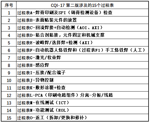 经过十几年的发展,在PCB领域新技术和新工艺层出不穷,为适应当前技术发展,AIAG在2021年8月发布第二版《CQI-17特殊过程:电子组装制造-锡焊系统评审(简称CQI-17)》标准。新版CQI-17的变化有更新整合、有新增、有删除,涉及的每个过程都需要评审打分,增加了过程的“过程参数指南”。特别更新了主审员的要求,强调具备锡焊专业知识的重要性。新版CQI-17的更新对锡焊工艺方面的专业知识提出更高要求。